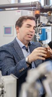 It's an important topic because our industries have to deal with very high temperatures. That means we need a lot of energy. In addition, we also have a lot of CO2 that is released in our raw materials. This means that if we are talking about decarbonisation, then we need to tackle the electrification of high-temperature processes. That means plasma technologies, microwave plasma technologies, electric heaters, high-temperature heaters, for metallurgy, for the chemical industry, for the cement industry. That means a broad spectrum, because all processes that take place above 600 degrees Celsius up to 2000 degrees Celsius are very important for us. These are strategic industries for Germany, for Europe. We are here in this Freiberg Refractory Forum, industry people and university people, and we are trying to cover the whole spectrum of hydrogen, ammonia and the corresponding materials that are needed, i.e. high-temperature materials, our materials, the refractory materials, but also the plasma technologies or hybrid firing technologies, so it may be that I switch with a plasma burner and then comes the electrical line and then the hydrogen burner. It depends on which atmospheres provide the added value for the final properties of the end product. Because we can not only save CO2 with the new hybrid firing technologies, we can possibly improve the properties of the new end product.