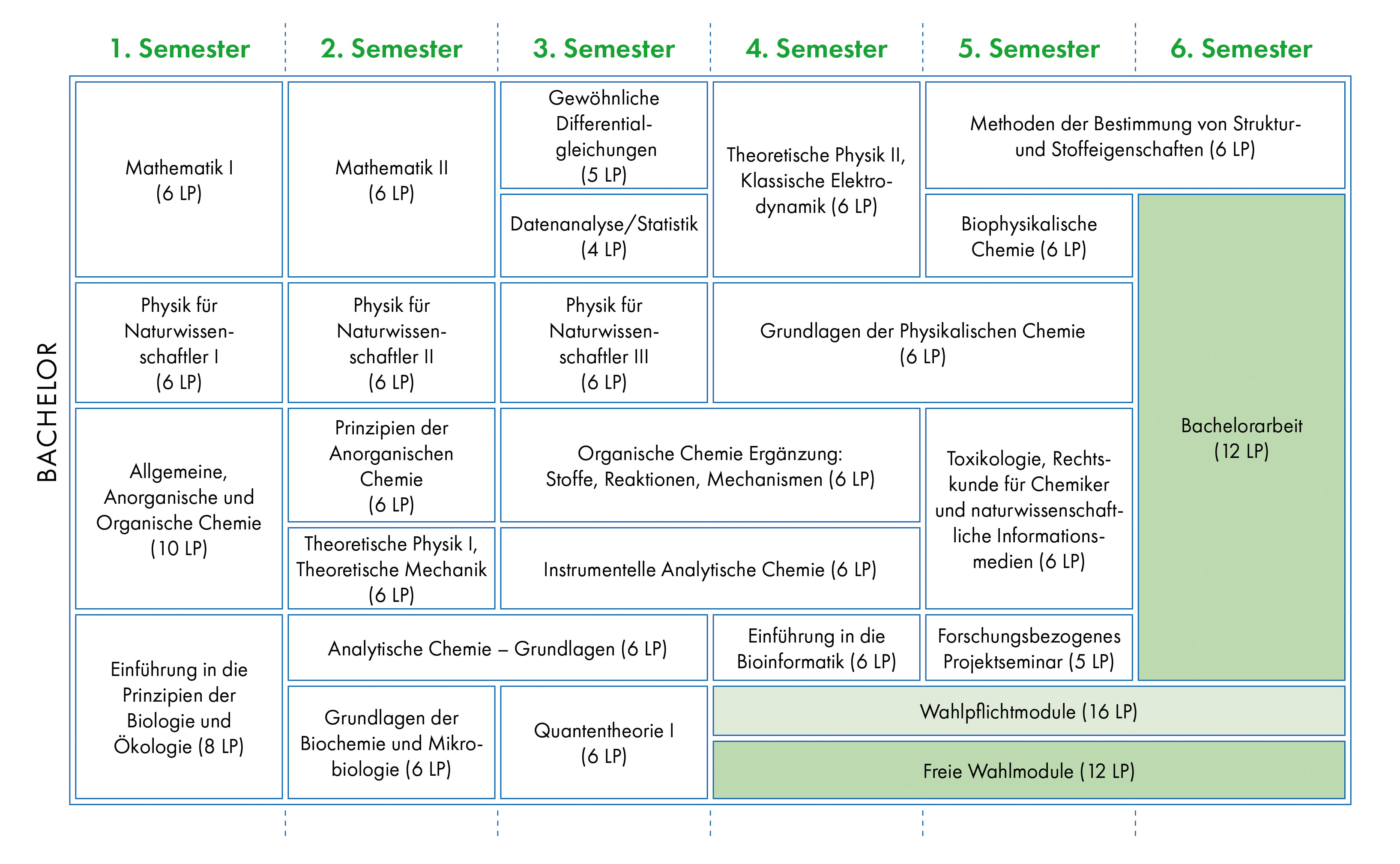 The Bachelor's degree program teaches a broad range of scientific principles with a high level of practical relevance. In this way, biologists, for example, are trained who have also attended lectures in quantum theory. And physicists who have studied the oxygen production of algae. The study program thus enables students to quickly familiarise themselves with complex interdisciplinary issues and recognise causal relationships. In later professional life, the knowledge acquired can then be easily transferred to a variety of other problems.
