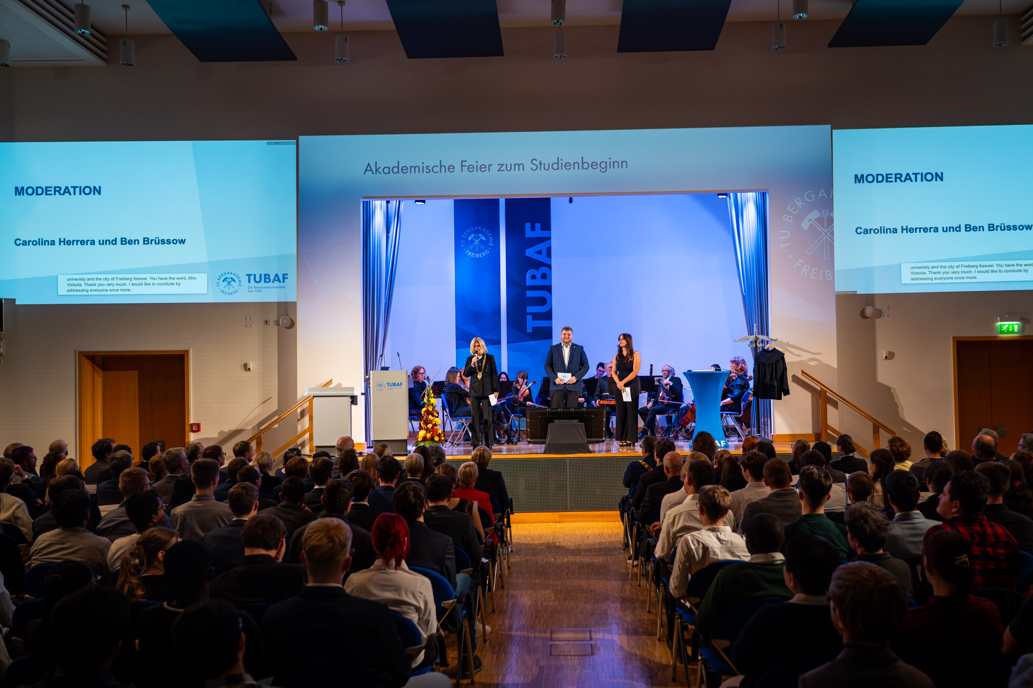 In festlichem Rahmen begrüßten das Rektorat, der amtierende Oberbürgermeister, das Studentenwerk Freiberg sowie unser Studierendenrat unsere Erstsemester. Auch Eltern und Angehörige waren herzlich willkommen, gemeinsam mit uns diesen besonderen Moment zu feiern.