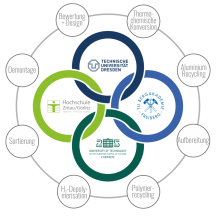 In diesem Verbund wird die Ressourcenuniversität TU Bergakademie Freiberg ihre Expertise für die Herstellung und Verarbeitung von hochwertigen Sekundärrohstoffen mit dem Schwerpunkt auf Leichtmetalle, wie Aluminium und Magnesium, einbringen. Dabei werden die beteiligten Institute der TUBAF den kompletten Leichtmetallkreislauf im Pilotmaßstab abbilden können, wobei vergleichsweise geringe CO2-Emissionen produziert werden sollen. Ziele sind die Entwicklung von effizienten Recycling- und Upcyclingtechnologien zur Erzeugung hochwertiger Sekundärmetalllegierungen einschließlich der Entwicklung von fortschrittlichen Schmelz- und Formgebungsprozessen für Werkstoffe mit maßgeschneiderten Eigenschaften. In Kooperation mit der Hochschule Zittau/Görlitz werden weiterhin Demontage-, Aufbereitungs- und Sortierprozesse zur Bereitstellung von Rezyklaten für unterschiedlichste Anwendungen und die Kooperationspartner des Forschungsverbundes entwickelt, deren Schwerpunkt das Kunststoffrecycling ist.