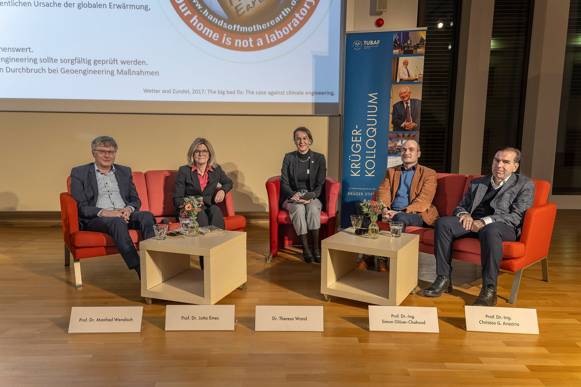 Die globale Erwärmung zählt zu den größten Herausforderungen unserer Zeit. Sie wirkt sich spürbar auf Ökosysteme, Wetterereignisse und das Leben der Menschen aus. Geoengineering eröffnet die Möglichkeit, durch technische Eingriffe gezielt in das Klimasystem einzugreifen, um die Erderwärmung zu verlangsamen oder deren Folgen abzumildern. Prof. Wendisch stellte verschiedene Geoengineering-Methoden vor, beleuchtete ihre Funktionsweise und mögliche Nebenwirkungen. In der abschließenden Podiumsdiskussion erörterte er gemeinsam mit Prof. Dr. Jutta Emes, Prof. Dr.-Ing. Christos G. Aneziris und Prof. Dr.-Ing. Simon Glöser-Chahoud die Probleme, Herausforderungen und Grenzen des technisch Machbaren.