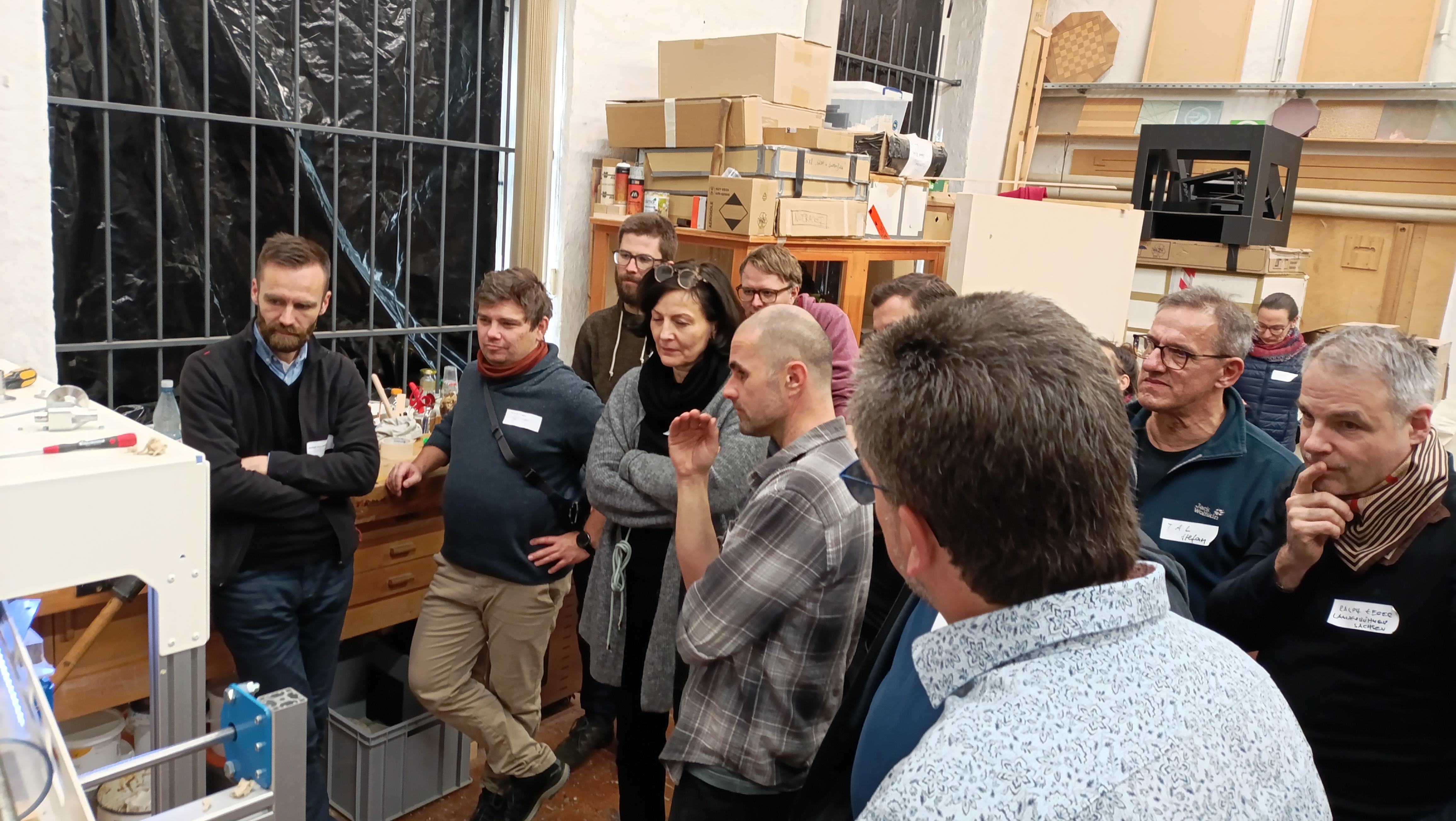 Nach einem Impulsvortrag unseres Projektpartners Norbert Richter, der den aktuellen Stand des gemeinsamen Forschungsprojekts vorstellte, bot der Workshop viel Raum für vertiefende Gespräche und eine Live-Demonstration des Druckprozesses.