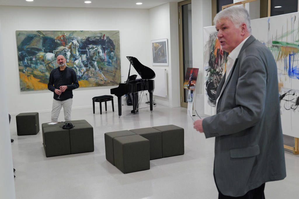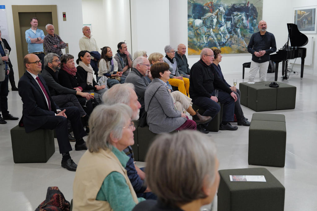 Die Finissage brachte bisherige Begleiterinnen und Begleiter mit neu am ZeHS-Format „Kunst trifft Wissenschaft am ZeHS“ Interessierten zusammen. Prof. Dirk Meyer, der Wissenschaftliche Sprecher des ZeHS, dankte im Rahmen der Veranstaltung den Sponsoren, die den Werdegang des Formats von Anfang an unterstützten und auch eine Einbindung in die Aktivitäten der Kulturhauptstadt Chemnitz ermöglichten. Walter Padao, Julius Nordheim und weitere Organisatoren des ZeHS-Formats traten bei zahlreichen anregenden Gesprächen in Austausch mit dem Publikum. Mit Marcus Dietrich vom IUZ am hauseigenen Flügel fand die Finissage eine wunderbare Untermalung. Über die Fortentwicklung des Formats, das die Verankerung der Universität in der Stadtgemeinschaft befördern soll, und weitere Veranstaltungen wird regelmäßig auf der Homepage des ZeHS https://tu-freiberg.de/zehs informiert. Ebenso gibt Frau Lemser Theresa [dot] Lemser [at] zehs [dot] tu-freiberg [dot] de (Theresa[dot]Lemser[at]zehs[dot]tu-freiberg[dot]de) Auskünfte zu weiteren Aktivitäten.