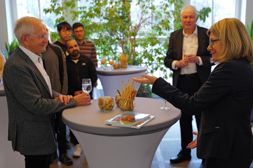 Die Gelegenheit der Übergabe von Glückwünschen wurde erneut für einen internen Austausch für Weiteres genutzt. Unter den Präsenten aus der Belegschaft fanden sich auch ausgewählte Literatur, erzgebirgische Volkskunst und interessante Minerale. Auch regionale Industriepartner waren persönlich vertreten. Einen Eindruck der Zusammenkunft vermitteln die beigefügten Bilder. Der Jubilar freute sich über zahlreichen Zuspruch und viele herzlich zugedachte kleinere Geschenke. Ein Anliegen drückte er aus: Gemeinschaftliche Arbeit möge in der gelebten Harmonie so weitergehen und zusätzlich wachsen.
