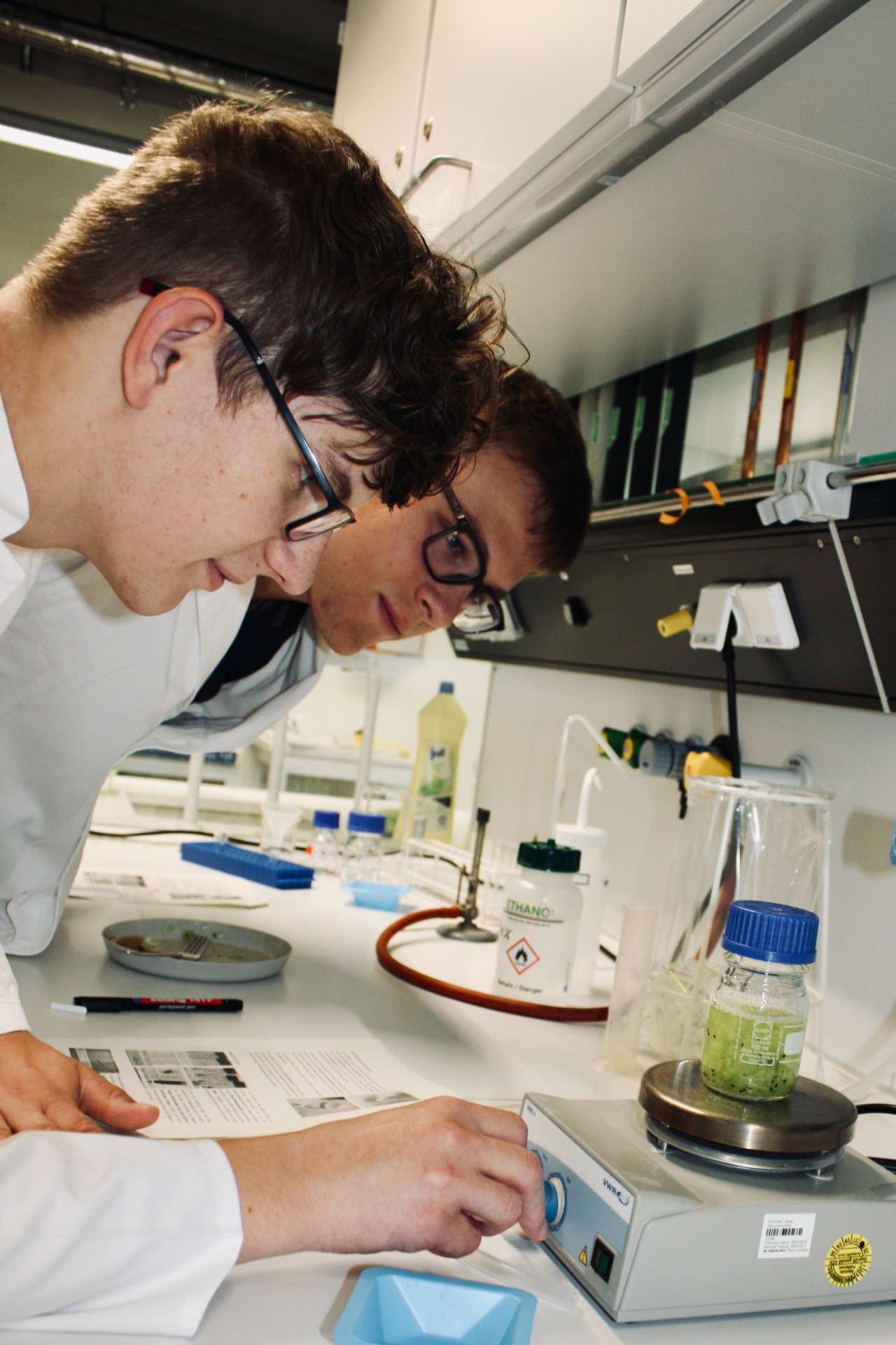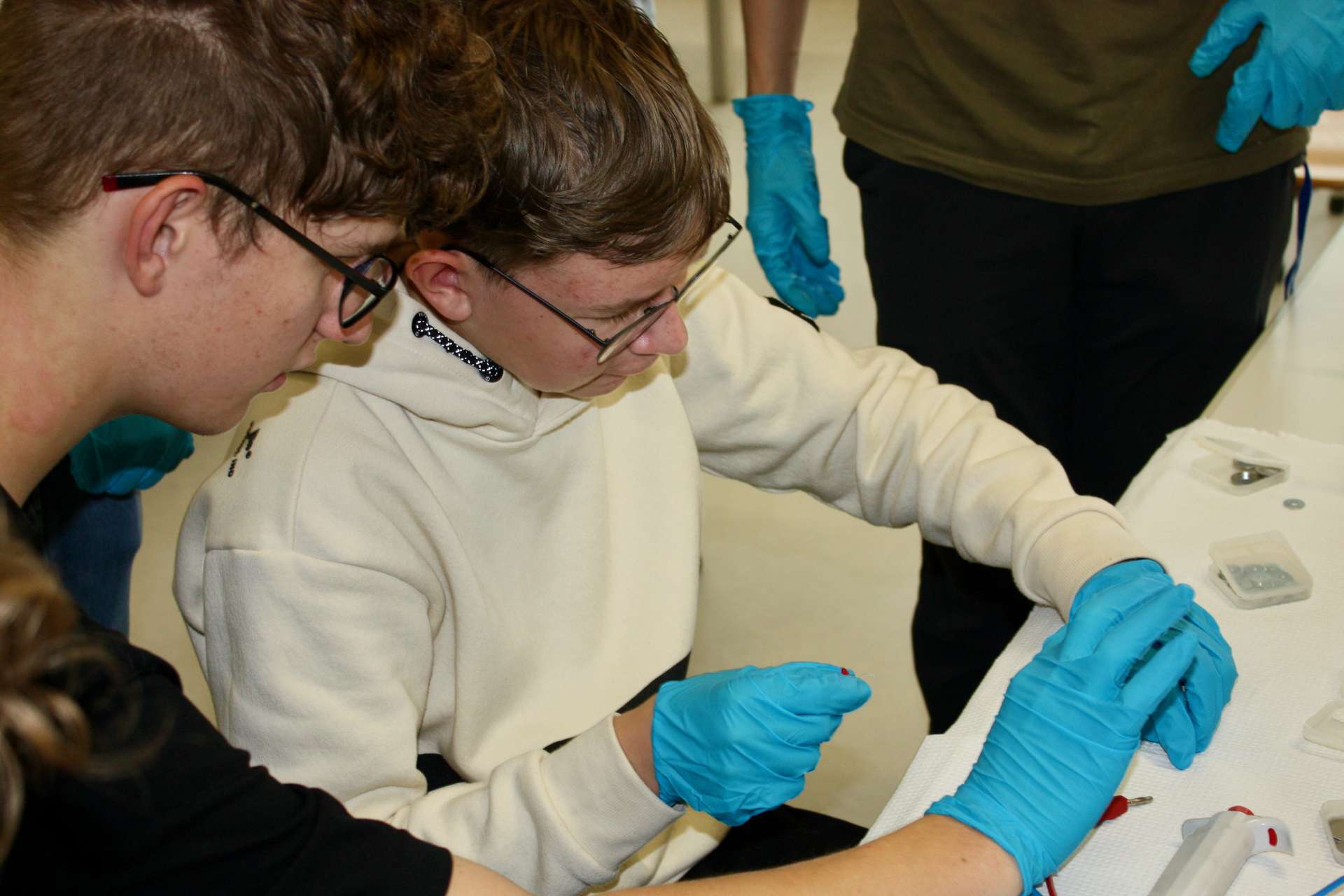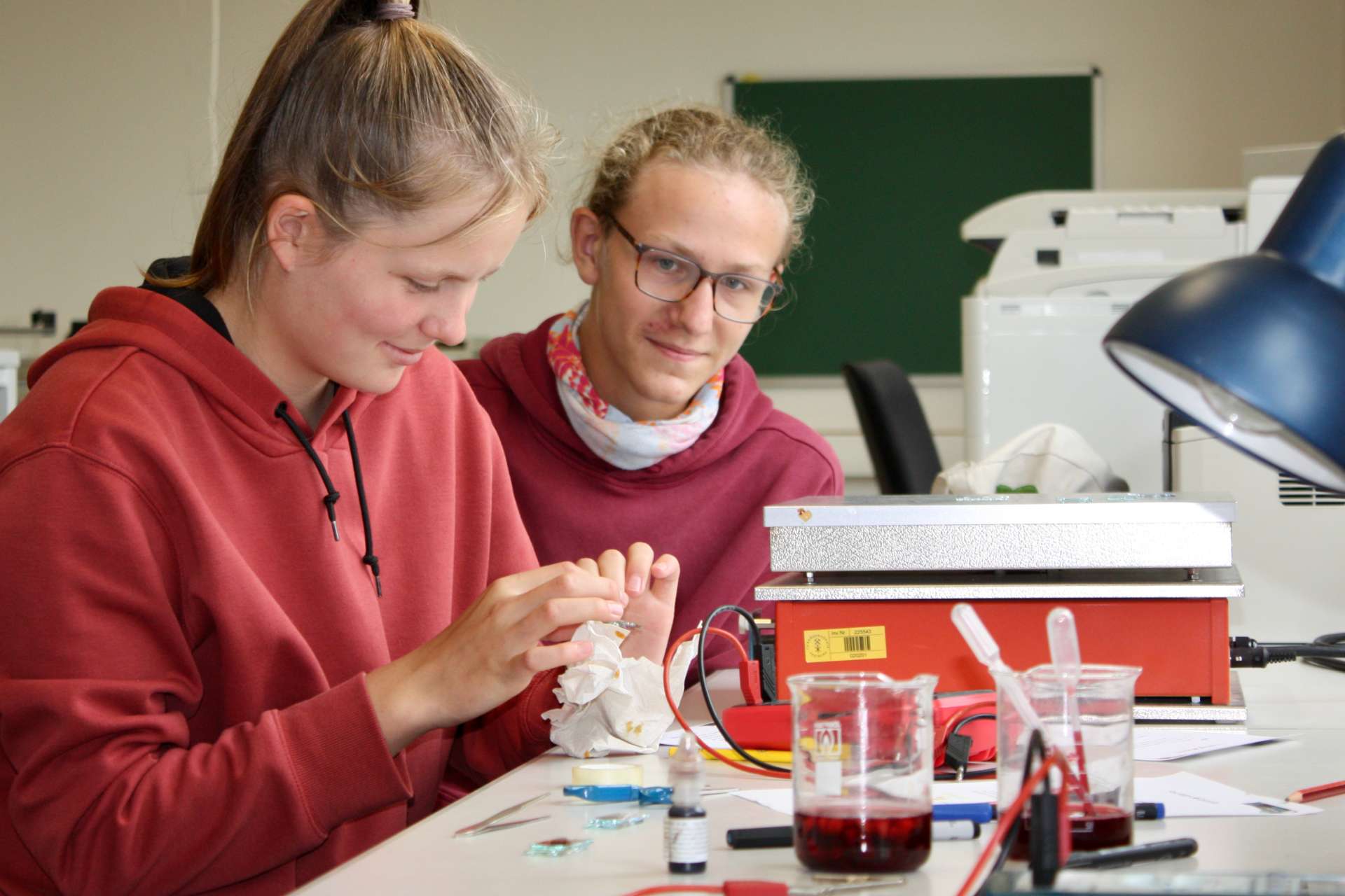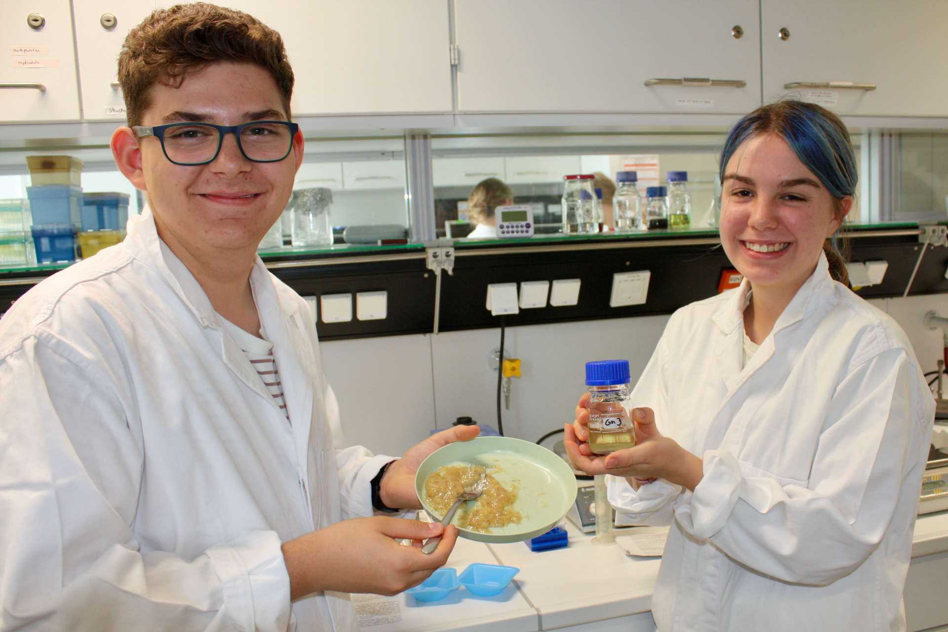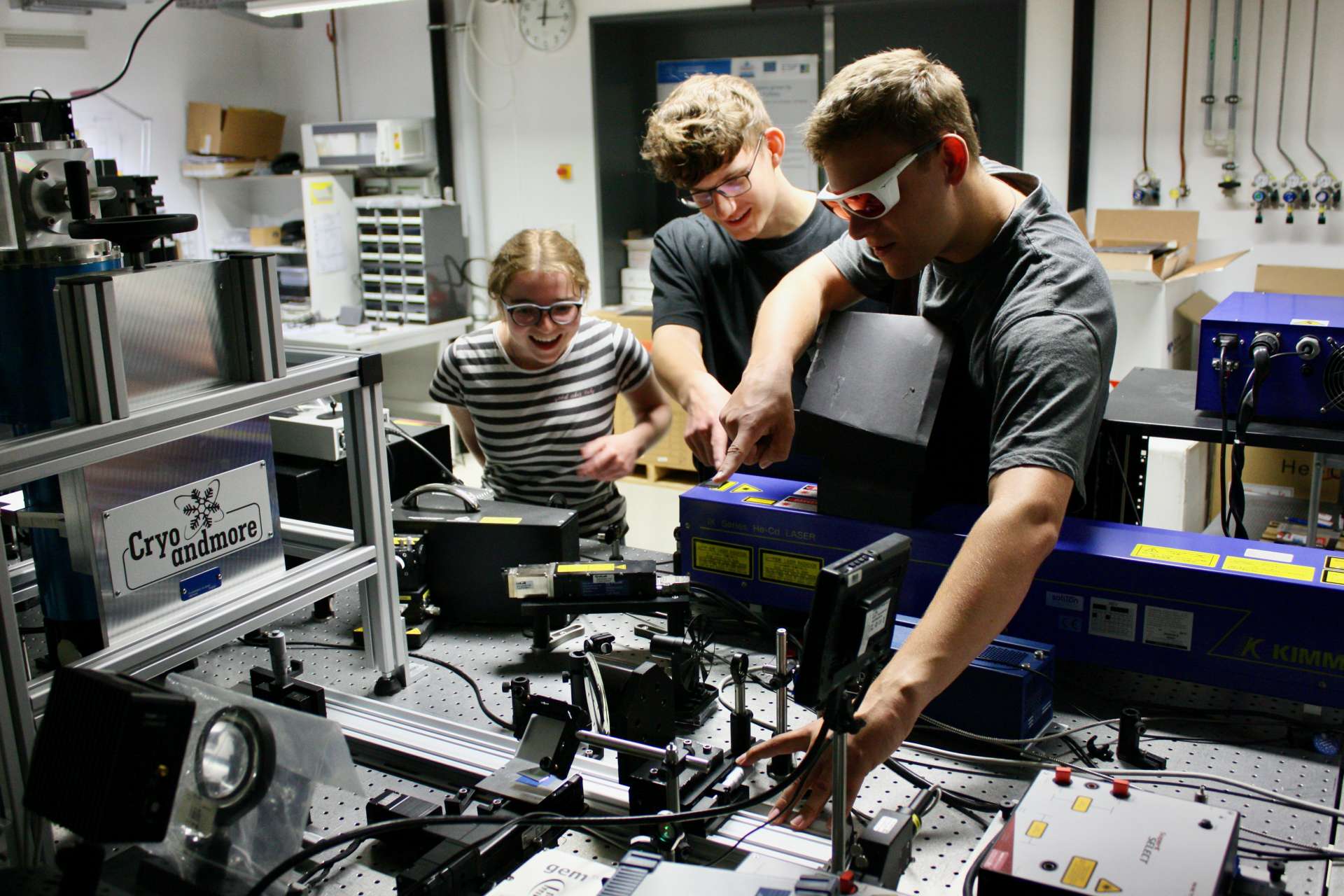 In den Praktika konnten die Jugendlichen DNS aus Früchten extrahieren, Gewässerproben analysieren und verschiedene Methoden der Materialsynthese und der Materialanalytik, Röntgendiffraktometrie, Photolumineszenz und Ramanspektroskopie, sowie die Lithografie im Reinraum kennenlernen. In einem Kreativworkshop bauten sie eigene Spektroskope, Batteriezellen und Farbstoffsolarzellen.