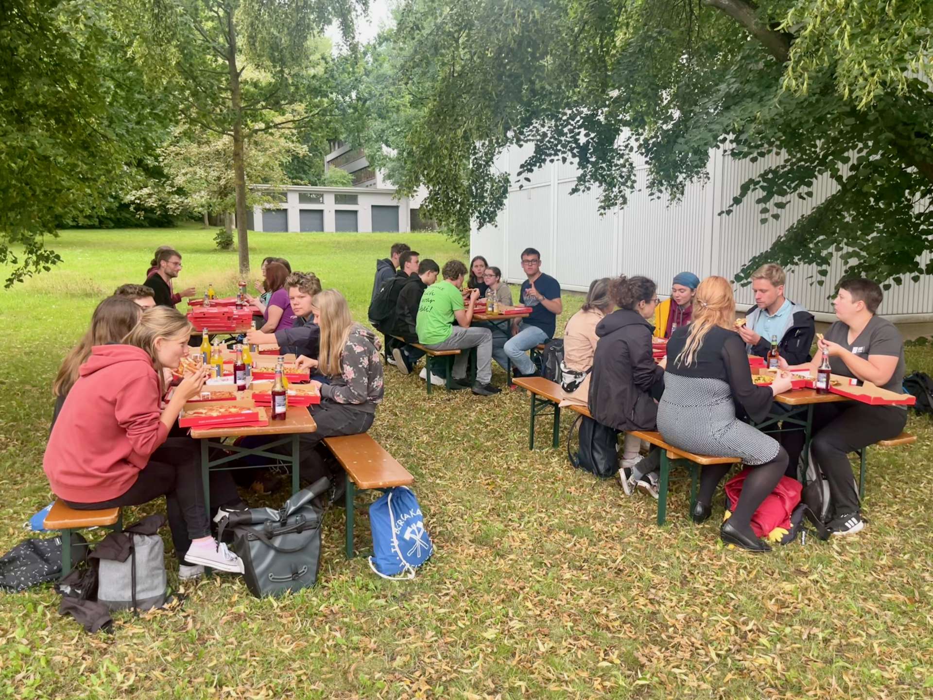 Ein besonderes Highlight war der Alumni-Nachmittag: Ehemalige Studierende berichteten über ihre Karrierewege in Wissenschaft und Industrie. Bei Pizza und Gesprächen im Freien entstand eine ungezwungene Atmosphäre, in der viele Fragen rund um Studium und Berufswahl Platz fanden.