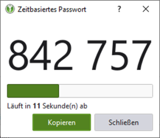 Sie können sehen wie sich das Fenster "Zeitbasiertes Passwort" öffnet. Kopieren Sie den Code innerhalb der angezeigten Zeit.